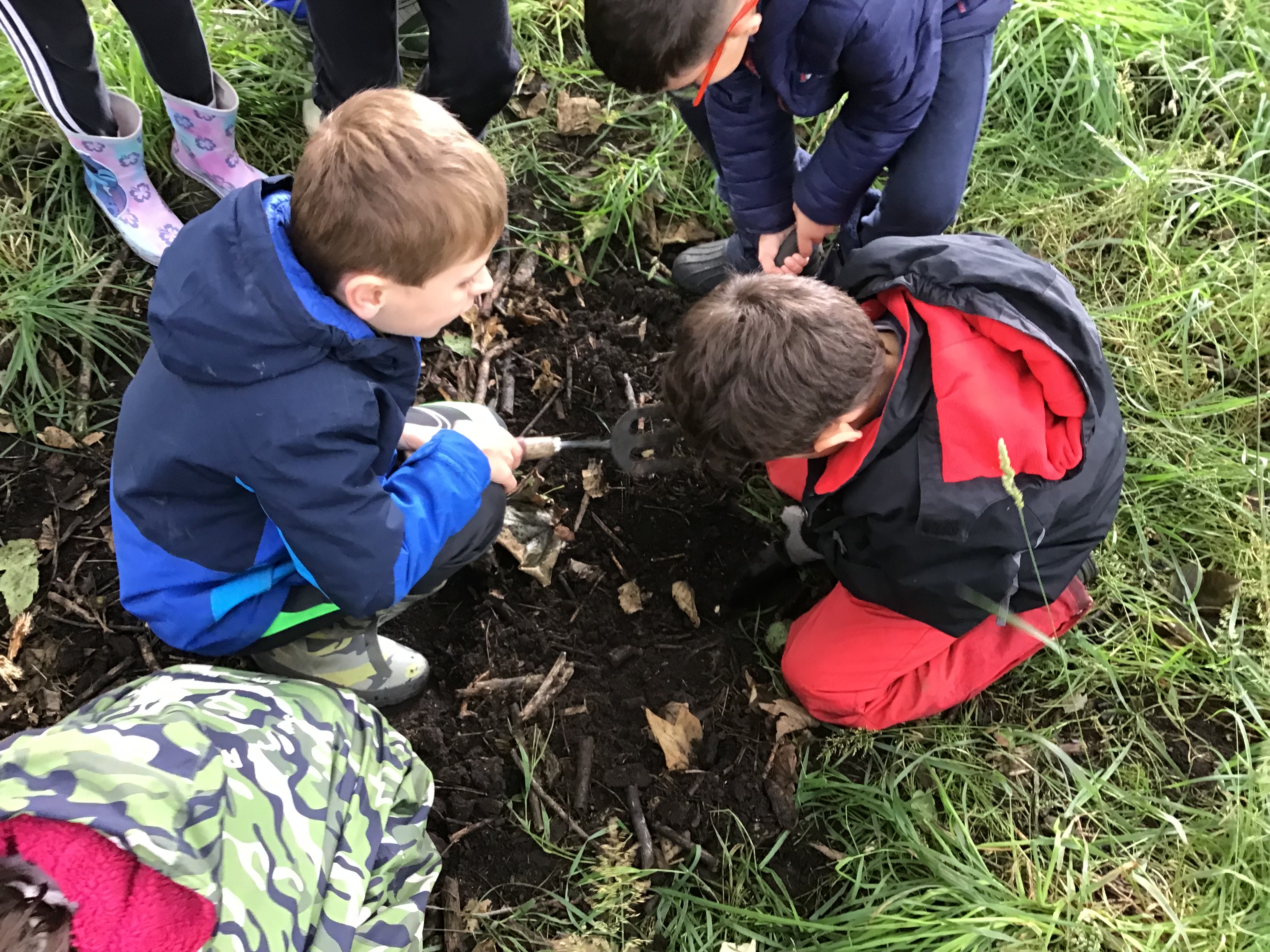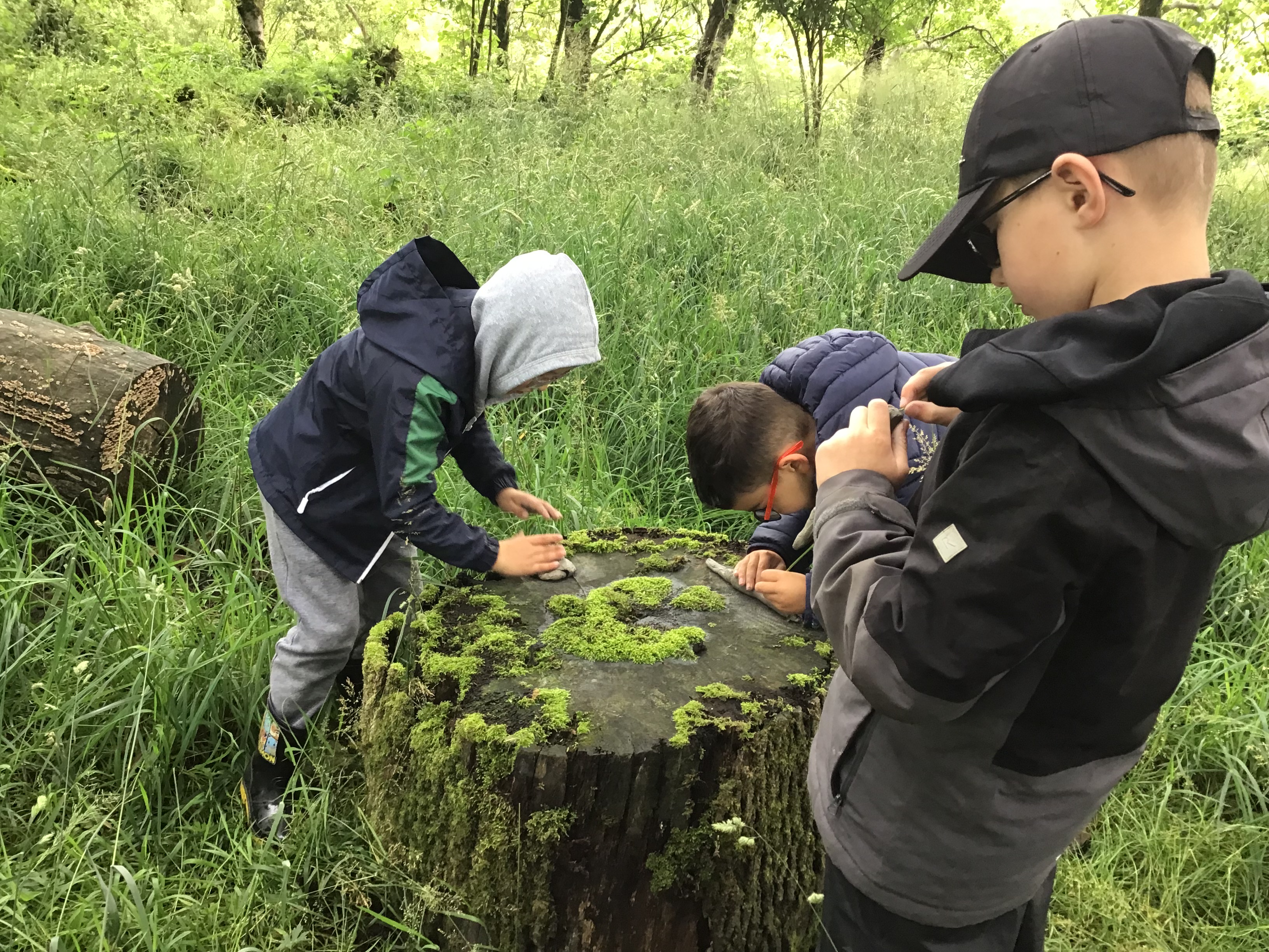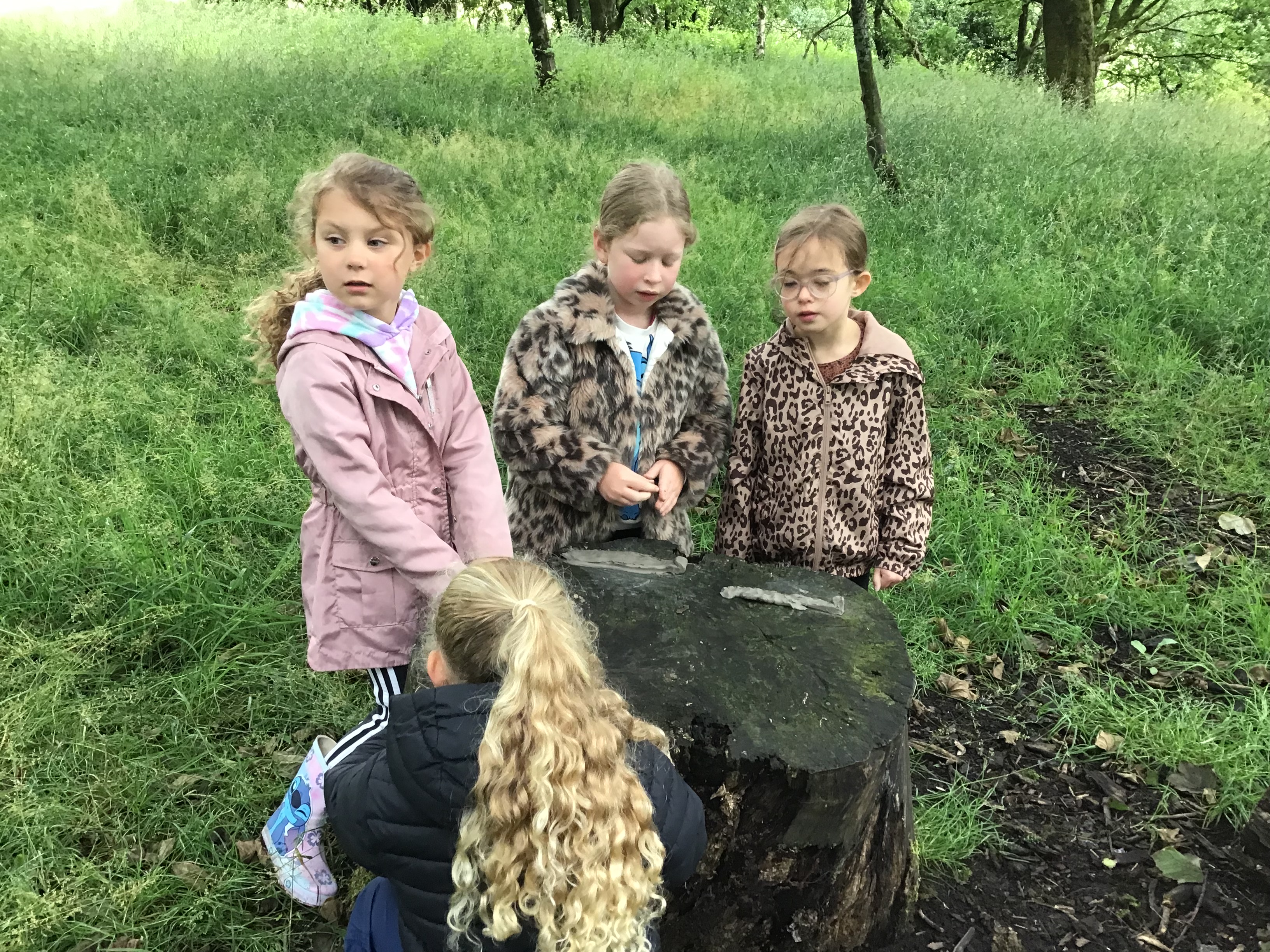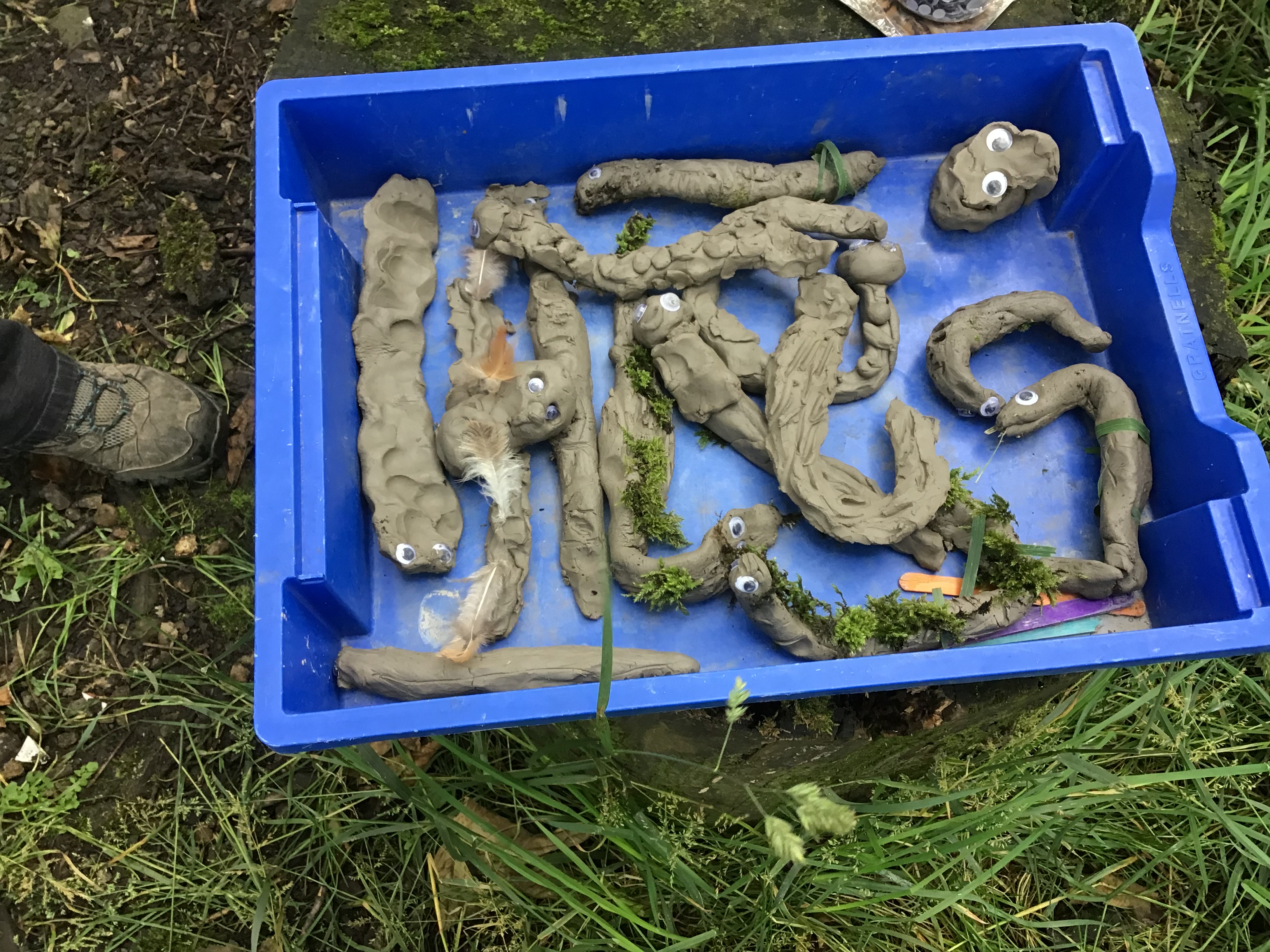 At Forest school class one looked at the books The Gruffalo and The Gruffalo's child and created their own clay models of the characters from the stories. They made lots of snakes, foxes, mice, owls and even Gruffalos! The children also spent time bug hunting and had a lovely hot chocolate and a biscuit to warm up!